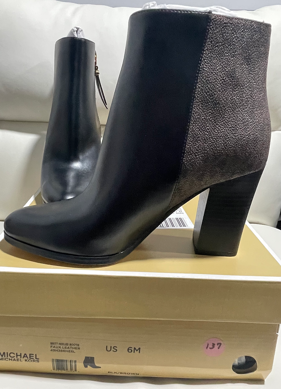 Michael Kors Britt Heeled Logo Bootie. Faux Leather